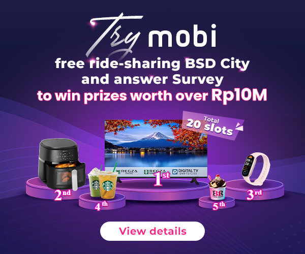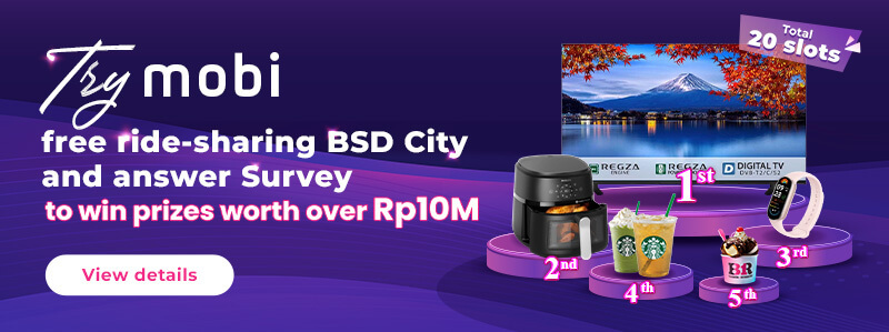 After completing your rides with mobi BSD City, please answer a survey to enter lucky draw worth Rp. 10,000,000